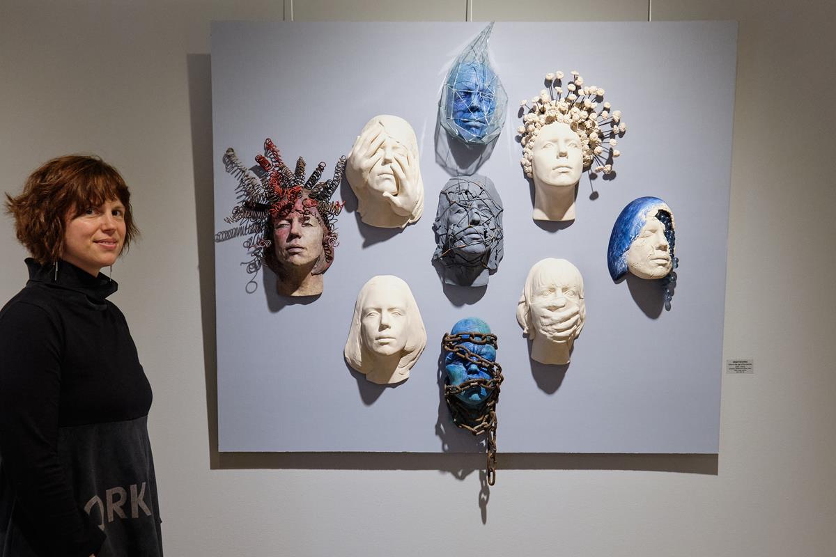 ...Iznimno snažan, dojmljiv i vizualno poticajan rad Irene Podvorac sastoji se od devet autoportreta objedinjenih pod nazivom “Irena u doba korone”. Kako sama autorica ističe, “radovi reflektiraju emocije izazvane karantenom, izolacijom, socijalnim distanciranjem, gubitkom prava na rad, gubitkom slobode kretanja”. Široki raspon različitih interpretacija teme autoportreta prati stanja i emocije koje autorica proživljava od lica s maskom koju umjetnica nosi i iza koje se skriva pa sve do onog idealnog stanja duha kojem svi težimo, a kojeg je praktički nemoguće postići u ovakvim izvanrednim okolnostima koje dokidaju osnovne potrebe i prava koja imamo kao ljudska bića......